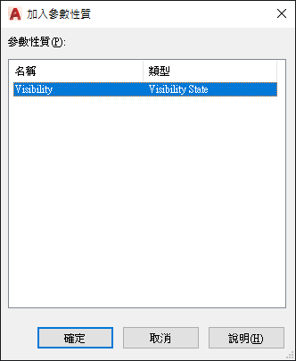 顯示已加入至圖塊定義的參數的可用自訂性質。