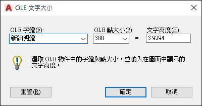 在圖面中插入 OLE 物件時,將該物件還原至其原來大小。