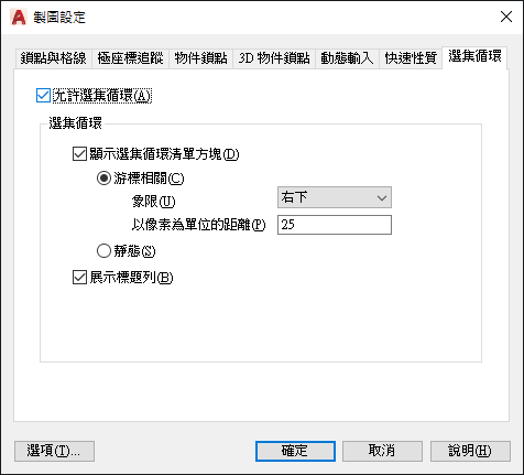 控制是否打開選集循環功能。(SELECTIONCYCLING 系統變數)