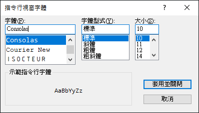 您可以變更指令視窗中所使用的文字字體以符合您的偏好。