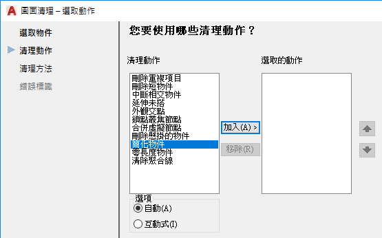 做為專案團隊工作程序的一部分,可以使用多個標準 AutoCAD 作業來移除專案圖面中多餘的資料。