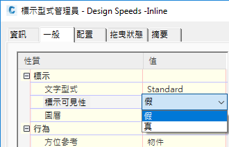 與物件型式相同,您可以為用於不同的專案階段,或針對不同的讀者來設計單獨的標示型式。例如,空的「無標示」型式非常有用,尤其是對於具有標示集的定線、縱斷面視圖和其他物件。透過套用此型式可以關閉物件的所有標示。可以關閉標示以減少某些設計階段的雜亂和繪製時間。