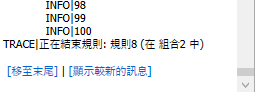 提示: 使用 logger.Debug 陳述式進行一般除錯。僅在您需要非常詳細的除錯資訊時,才使用 logger.Trace 陳述式。規則追蹤行為非常詳細,輸出可能多得讓人望而卻步。僅在您需要「軌跡」等級的詳細資料時,才使用「軌跡」等級。
