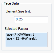 - 針對「選取的面」指定所需的「元素大小」。網格產生器會調整實際的元素大小,沿選取的模型面產生所有元素數目。