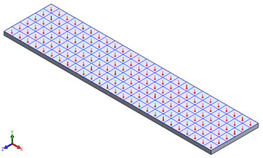 在下方的平面網格模型中,指向頂面右下角的箭頭表示由 (1, 1, 1) 向量投影方法所產生的材料方位符號。