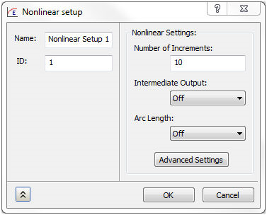 - 進階設定:此按鈕會開啟非線性分析的「進階設定」。這同時適用於非線性靜態和非線性暫態分析。