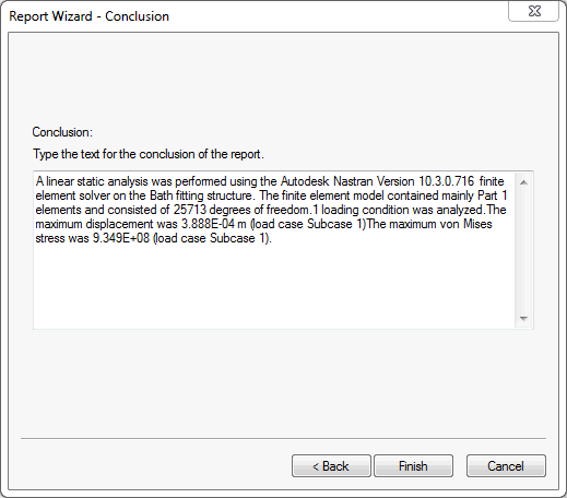 報告產生精靈會建立一個 HTML 報告,其中包含分析摘要。目前,僅支援線性靜力分析用於產生報告。