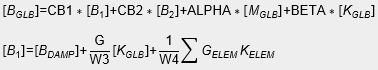 In the second equation above, the first term contains terms from viscous damping elements (CDAMP). The second term is structural damping based on the global stiffness matrix multiplied by the overall structural damping coefficient, specified by PARAM, G. The third term is the structural damping matrix created when GE is specified on the MATi entries. The default values of 0.0 for W3 and W4 cause the second and third terms to be ignored regardless of the presence of PARAM, G. The units of W3 and W4 are radians per unit time. See also CB1, CB2. |