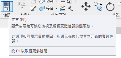 當您將游標停放在功能區中的工具上時,Revit 依預設會顯示工具提示。工具提示提供簡短的工具描述。如果把游標停放在功能區工具上更久一點,將顯示其他資訊 (如果有)。當工具提示可見時,可以按 F1 取得關聯式說明,其中提供關於該工具的更多資訊。
