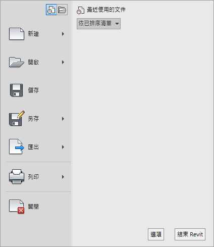 「最近使用的文件」可以查看最近開啟的檔案清單。使用下拉式清單可變更最近使用的文件之排序順序。使用圖釘可將文件一直保留在清單中,無論最近何時開啟它們。