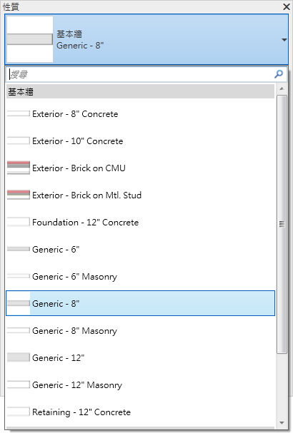如果用於放置元素的工具處於作用中,或在繪圖區域中選取了相同類型的元素,則性質選項板的頂端會顯示類型選取器。