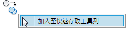 導覽功能區以顯示您想要加入的工具。在工具上按一下右鍵,然後按一下「加入至快速存取工具列」。