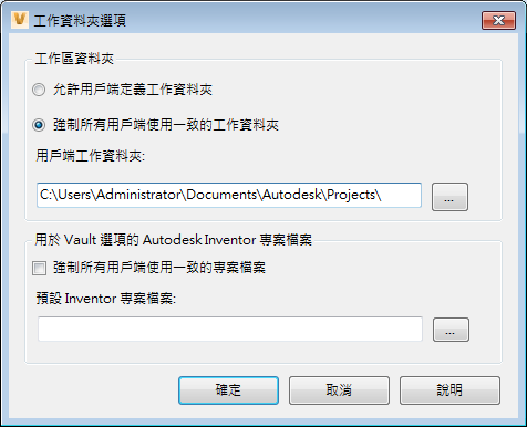 系統管理員可在共用網路位置上指定一個工作資料夾供所有專案成員使用。