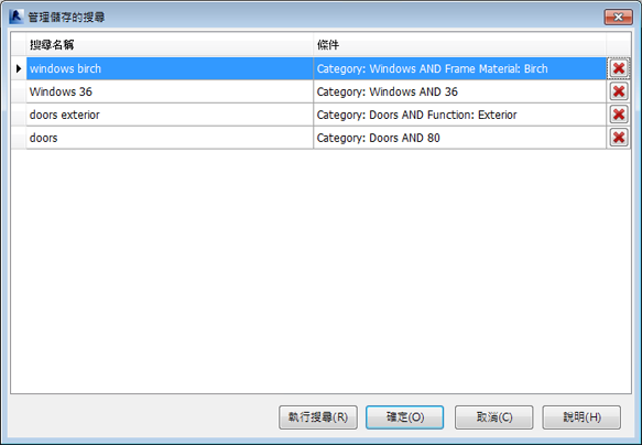 註: 如果選取了 Revit 族群檔案,「搜尋條件」清單會更新,以包括族群檔案名稱 (例如,File:FileName.rfa)。