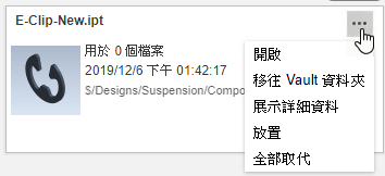 在 Vault 中開啟選取的零件。