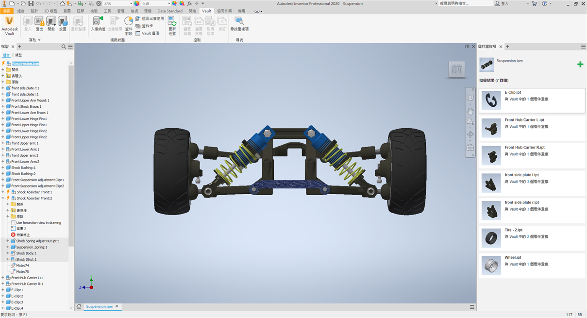 1. 在 Inventor 中,開啟組合並將其連接至已啟用重複項搜尋設定的 Vault。