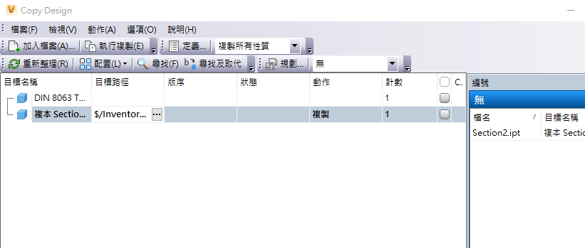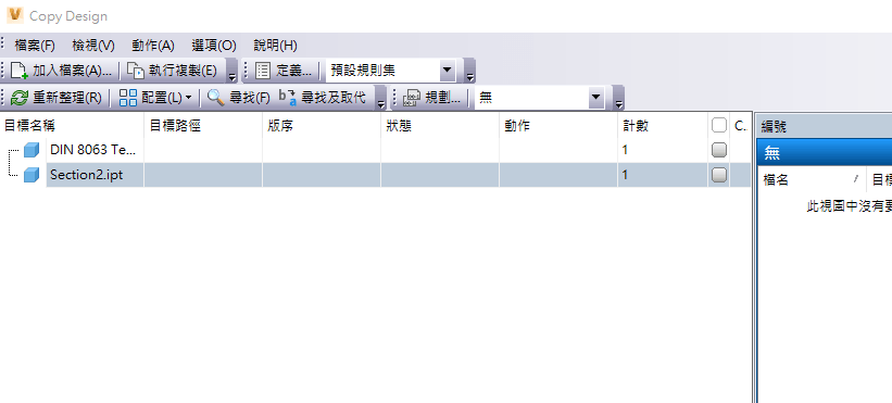 註: 如果已隱藏從屬檔案,將顯示以下訊息:「所加入物件的一些子系無法存取」。管理員必須提供對從屬檔案的存取權。取得存取權後,請重新整理「Copy Design」主視圖。