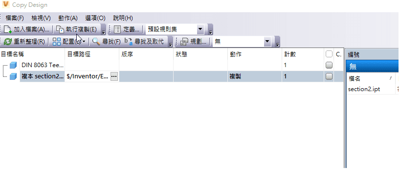 檔案將加入至「Copy Design」對話方塊的主視圖中。