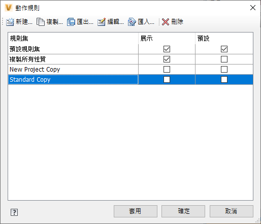 可在「動作規則」對話方塊中建立、編輯和刪除動作規則集。