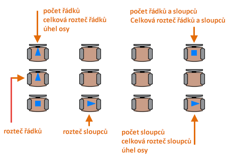 Chcete-li objekty, označované jako zdrojové objekty duplikovat, vyberte je a zvolte vzor uspořádání. Existují tři typy polí: