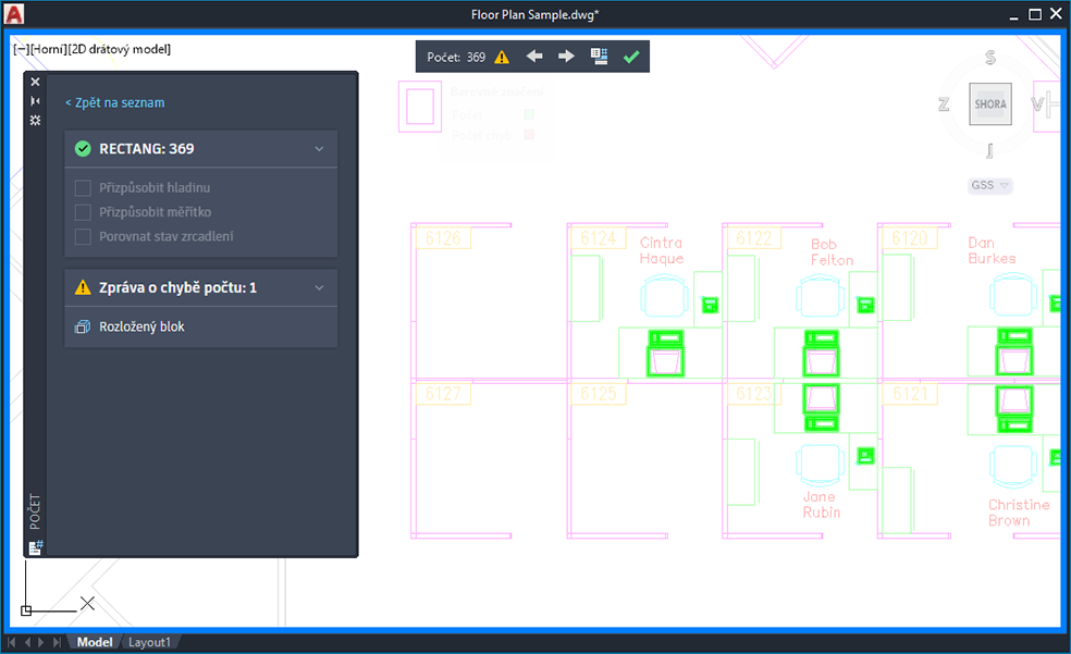 Poznámka: Na paletě Počet se zobrazí pouze viditelné bloky v modelovém prostoru.