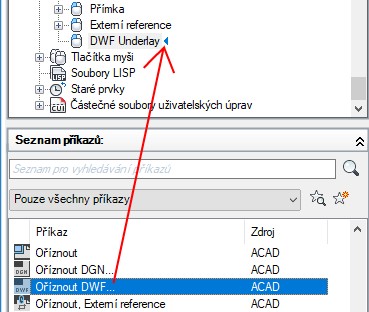- Pokud chcete nahradit aktuální příkaz přiřazený k akci dvojitého kliknutí, přetáhněte příkaz z podokna Seznam příkazů na akci dvojitého kliknutí v podokně Uživatelské úpravy: <název souboru>.