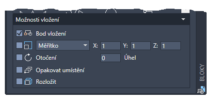 Se vkládáním bloků do výkresu jsou spojeny čtyři položky.