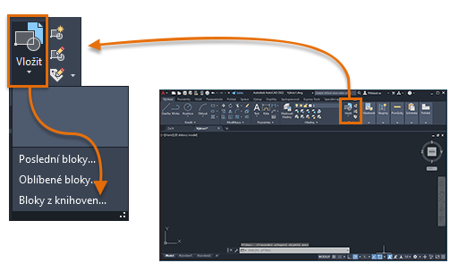 Obvykle bloky vkládáte do aktuálního výkresu z jednoho z následujících zdrojů: