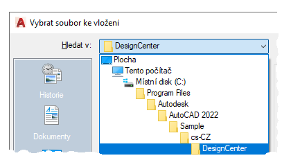 - Přejděte do složky DesignCenter, kde jsou uloženy různé vzorové výkresy.