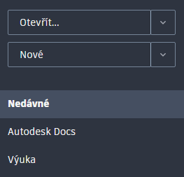Po spuštění aplikace AutoCAD klikněte na kartě Začít na tlačítko Nový, čímž zahájíte nový výkres, nebo klikněte na tlačítko Otevřít, čímž zahájíte práci na existujícím výkresu.