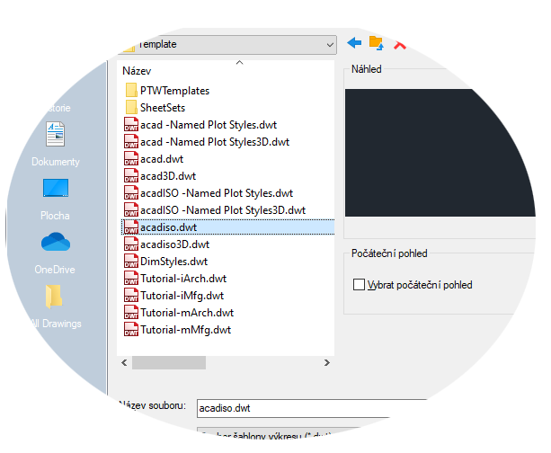 Všechna tato nastavení lze uložit do souboru šablony výkresu. Klikněte na tlačítko Nový a vyberte si z několika souborů šablon výkresu: