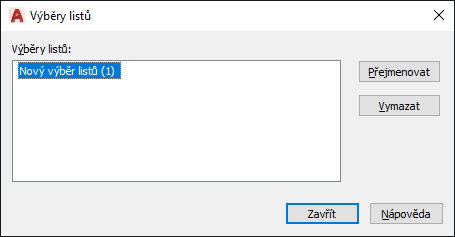 Určuje výběr listů, který chcete přejmenovat nebo vymazat.