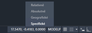 Pokud chcete zobrazit další možnosti, klikněte pravým tlačítkem na položku Souřadnice kurzoru.