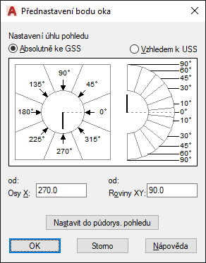 Určuje úhly pohledu pro zobrazení půdorysu (rovina XY) ve vztahu k vybranému souřadnicovému systému.