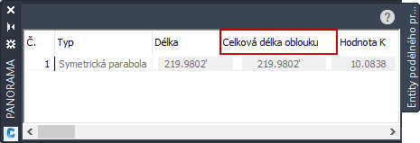 Hodnota celkové délky oblouku zobrazuje celkovou délku výškového oblouku, zatímco vlastnost délky zobrazuje délku vyřešené části geometrie oblouku, například když jsou podél oblouků připojeny tečny.