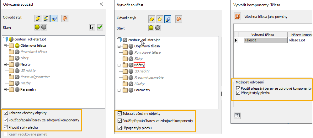 Další informace o vytváření odvozených součástí naleznete v části Vytvoření odvozené součásti nebo sestavy.