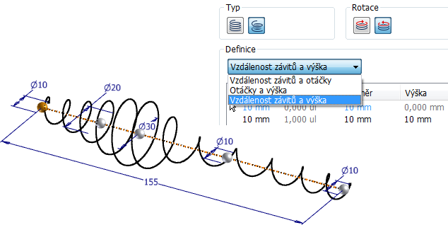 Příkaz Spirálovitá křivka byl vylepšen tak, aby byl proces vytvoření šroubovice s proměnnou roztečí snazší.