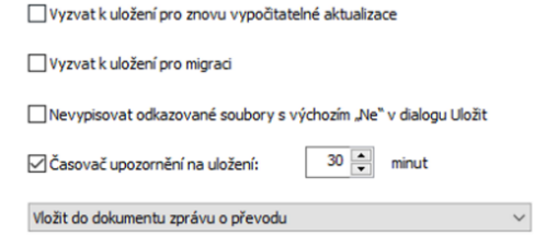 Výzvy stavu uložení nahrazují možnosti Vyzvat k uložení pro znovu vypočitatelné aktualizace, Vyzvat k uložení pro migraci a Nevypisovat odkazované soubory s výchozím „Ne“.