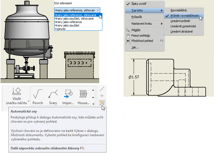 Další informace naleznete v částech Vylepšení typů kót, Obecná vylepšení výkresů a Vylepšení stylů výkresu.