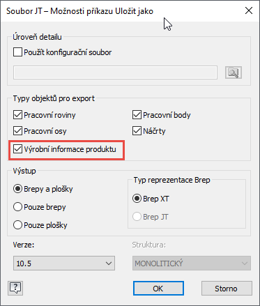 - Export do formátu JT nyní podporuje export softwarově interpretovatelných sémantických výrobních informací produktu (PMI). Dříve se při zaškrtnutí políčka Výrobní informace produktu exportovala grafická data těchto informací (PMI).