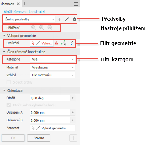 - Při vytváření rámových konstrukcí vám nový filtr Kategorie umožní zefektivnit výběr. Díky předvolbám můžete ukládat nejčastěji používaná nastavení rámových konstrukcí k pozdějšímu opakovanému použití.