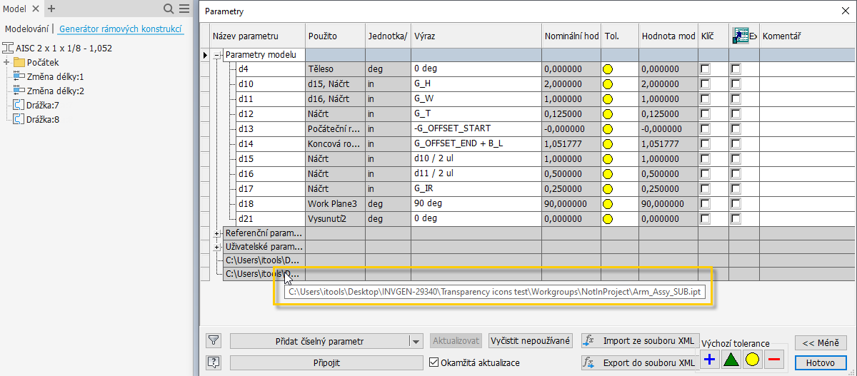 Další informace o parametrech naleznete v části Práce s parametry v modelech.