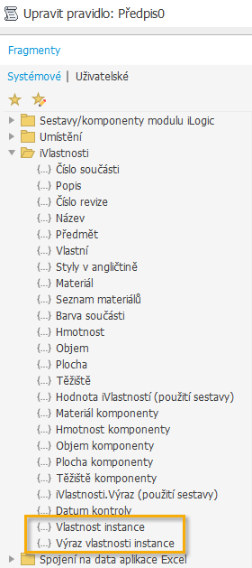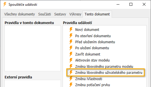 Podpora modulu iLogic u událostí změn uživatelských parametrů