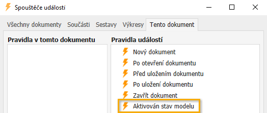 - V dialogu Spouštěče událostí je nyní k dispozici nová událost s názvem Aktivován stav modelu. Tento spouštěč se spustí při aktivaci stavu modelu. Tento spouštěč slouží ke spuštění pravidla v dokumentu, ve kterém došlo k události.
