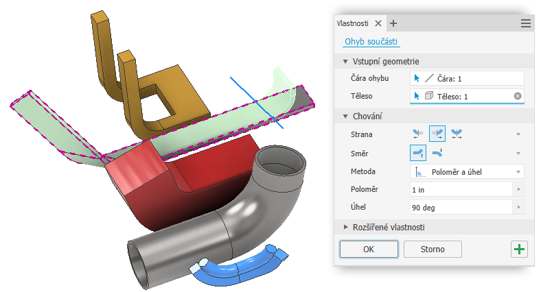 Další informace o příkazu Ohyb naleznete v části Ohyb součástí.