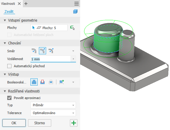 Další informace o příkazu zesílení/odsazení naleznete v části Zesílení ploch nebo odsazení povrchů.