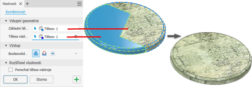 Další informace o příkazu Kombinovat naleznete v části Kombinování nebo dělení těles a ploch.