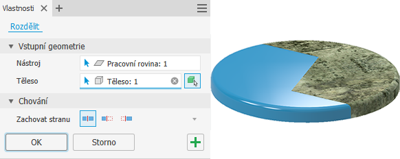 Další informace o dělení ploch a těles naleznete v části Kombinování nebo dělení těles a ploch.