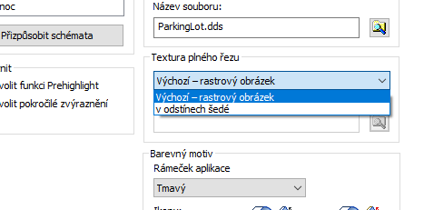 Textura plného řezu vám umožňuje určit mapu textury, která se použije u překrývajících se ploch v pohledech řezu modelu. Výchozí hodnotou je šedá barva. Chcete-li použít jinou barvu, vytvořte obrázek a vyberte, že jej chcete použít jako texturu plného řezu.