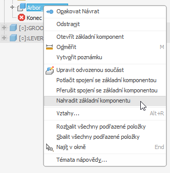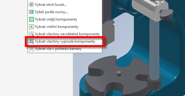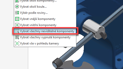 Nová možnost Vybrat všechny vypnuté komponenty umožňuje vybrat všechny vypnuté komponenty v sestavě, abyste je mohli přepnout na zapnuté. K této možnosti se dostanete následovně: